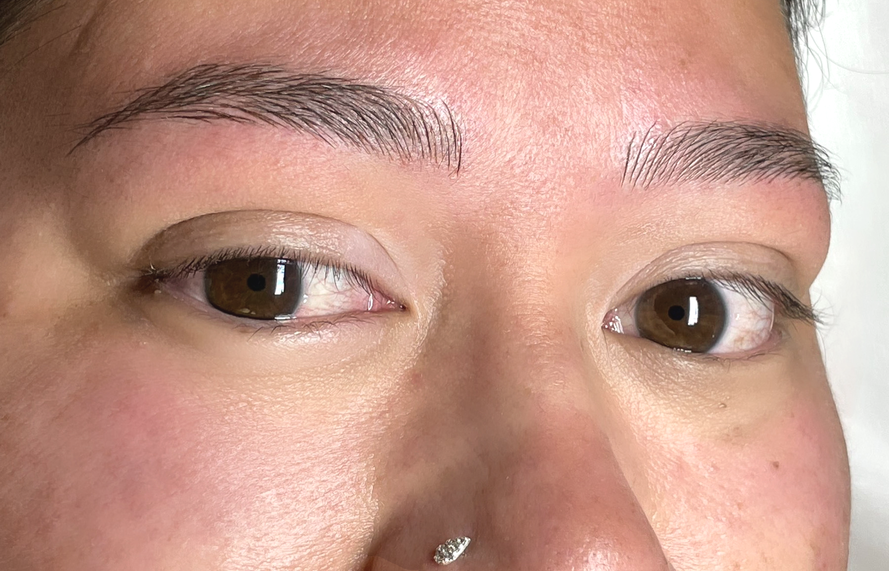 Semipermanentes Make-up, um das ästhetische Erscheinungsbild der Augenbrauen voluminöser und dichter zu gestalten.